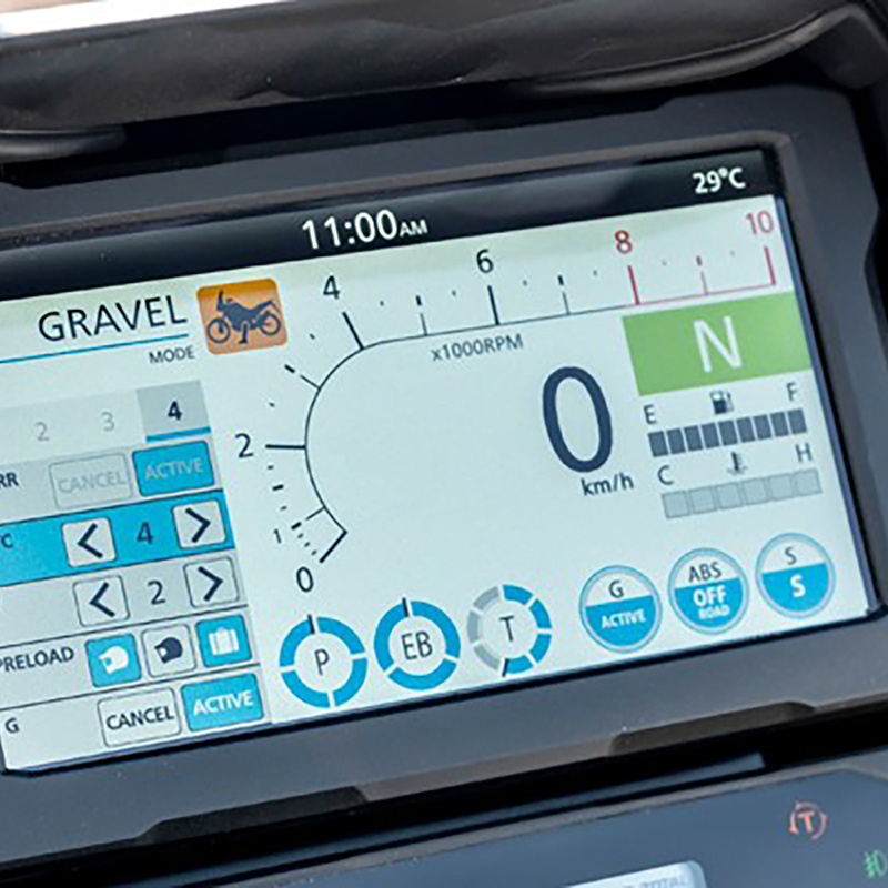 Acelerador electrónico TBW renovado (Throttle By Wire). El modo OFF-ROAD se suma a los modos por defecto TOUR, URBAN y GRAVEL.