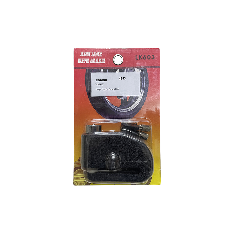 Protege tu moto con la Traba Disco con Alarma. Seguridad avanzada con sensor de movimiento y sonido potente, ideal para prevenir robos.